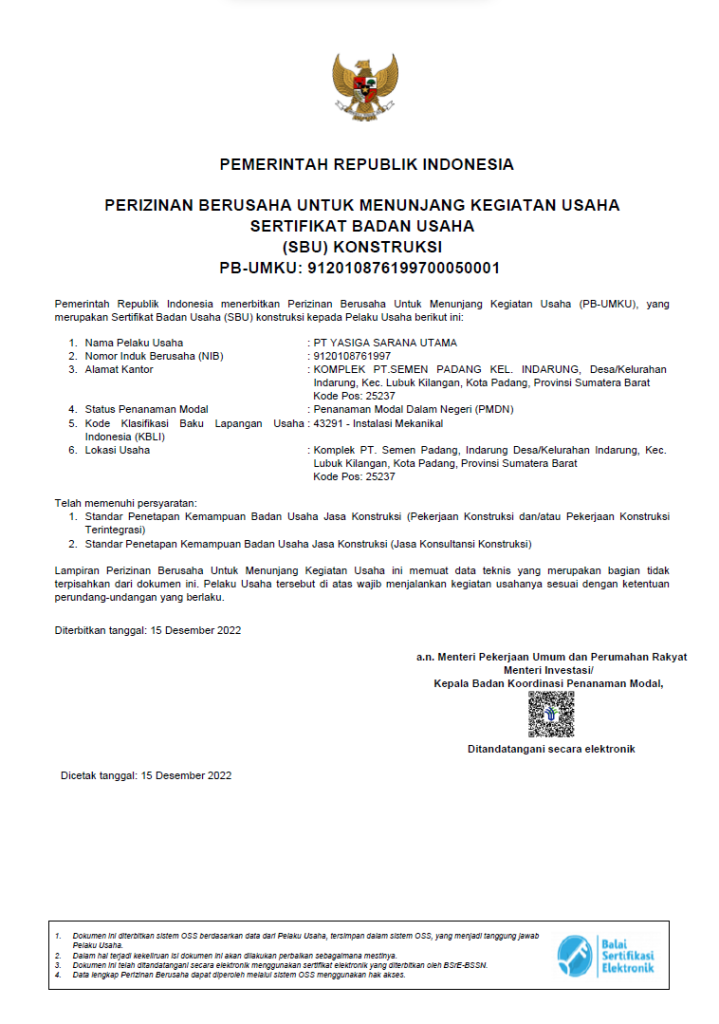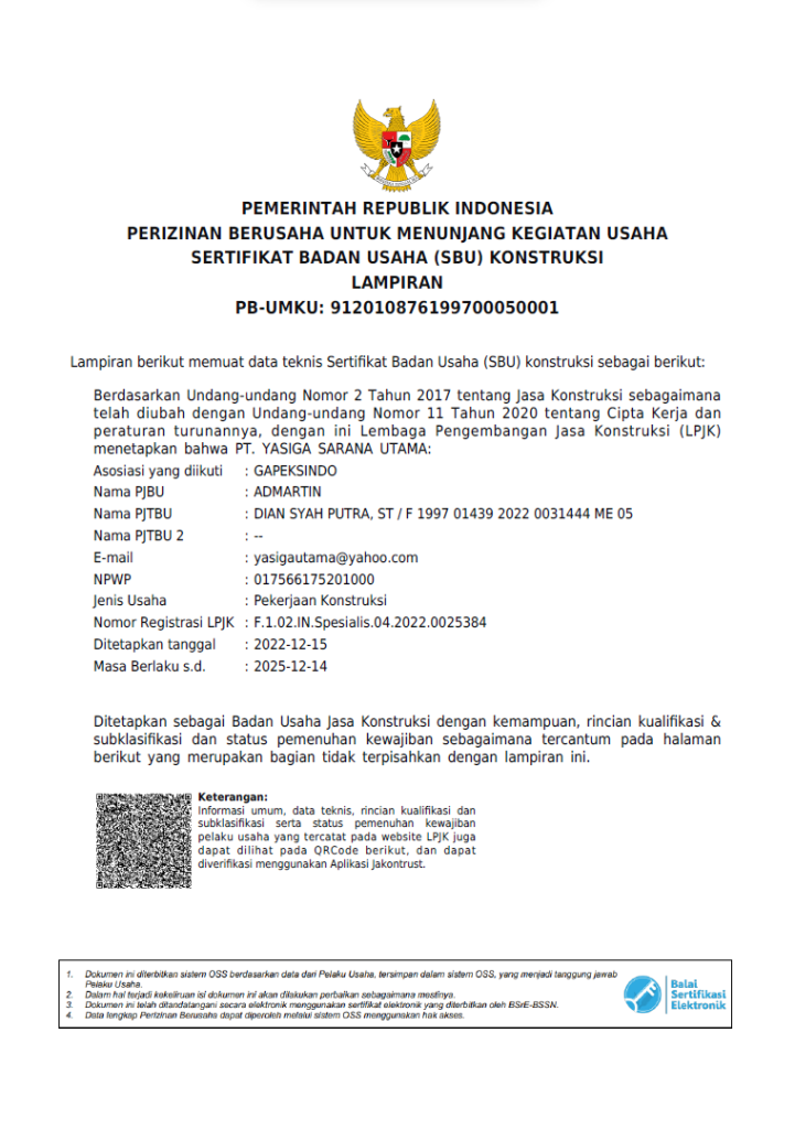 Sertifikat Badan Usaha Jasa Konstruksi