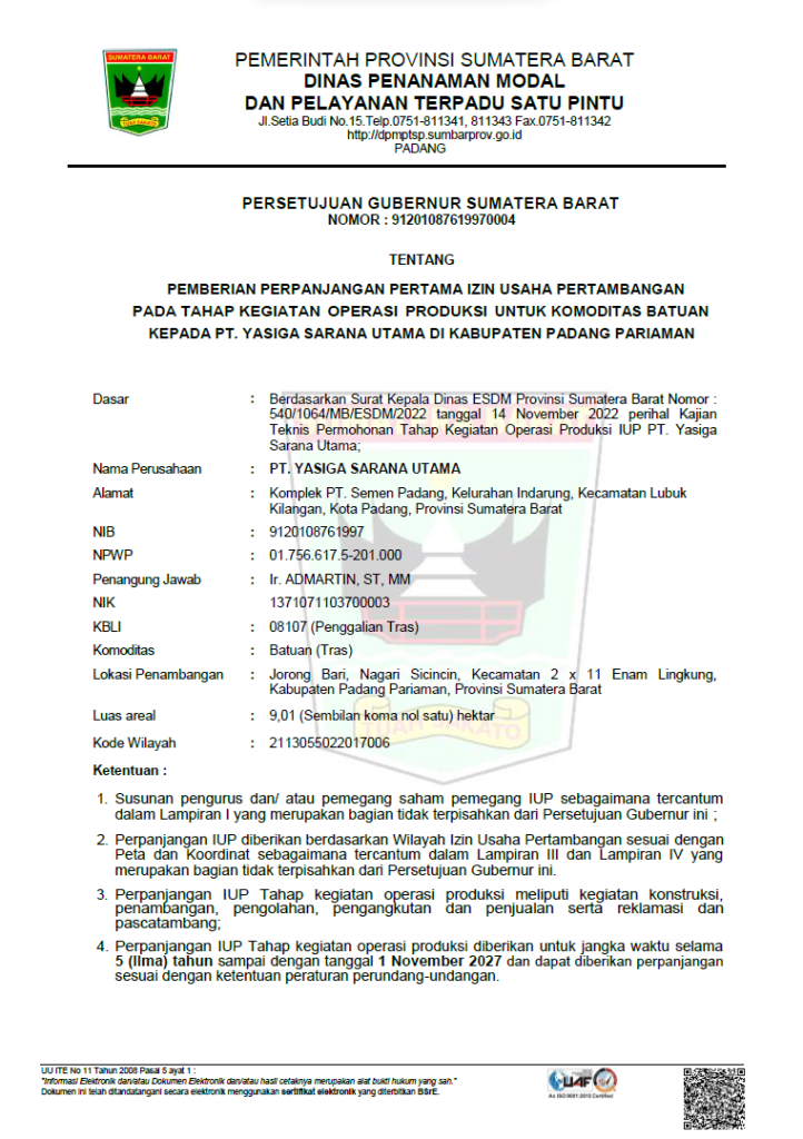 Izin Usaha Pertambangan Pozzolan