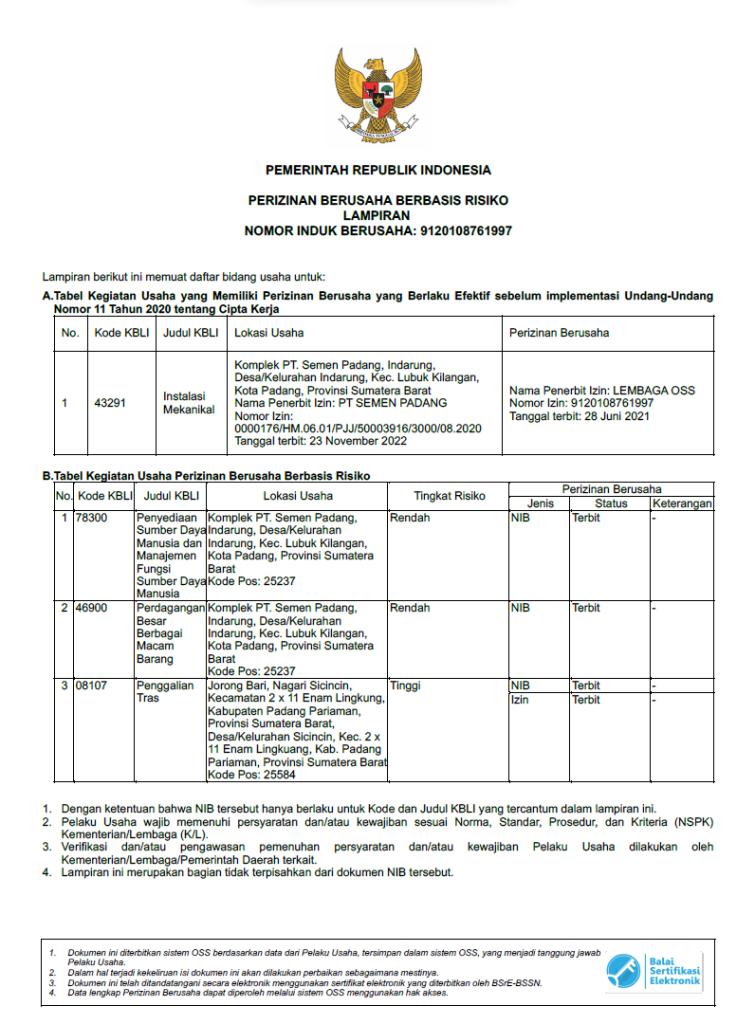 Lampiran Perizinan Usaha Berbasis Resiko
